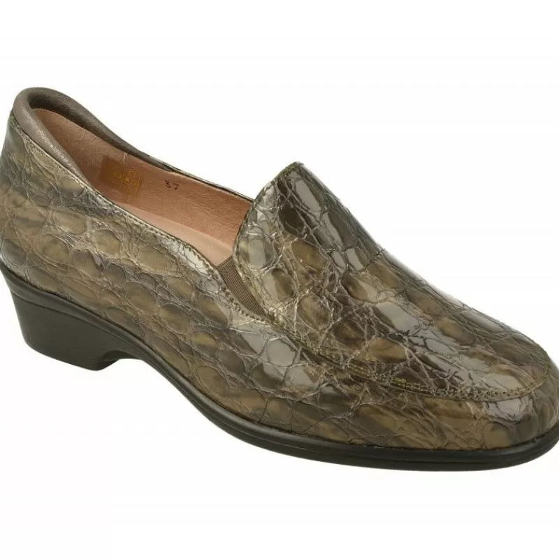Un Clasico Zapato Mocasin Con Pala De Elasticos En Piel Acharolada Imitando A Cocodrilo.